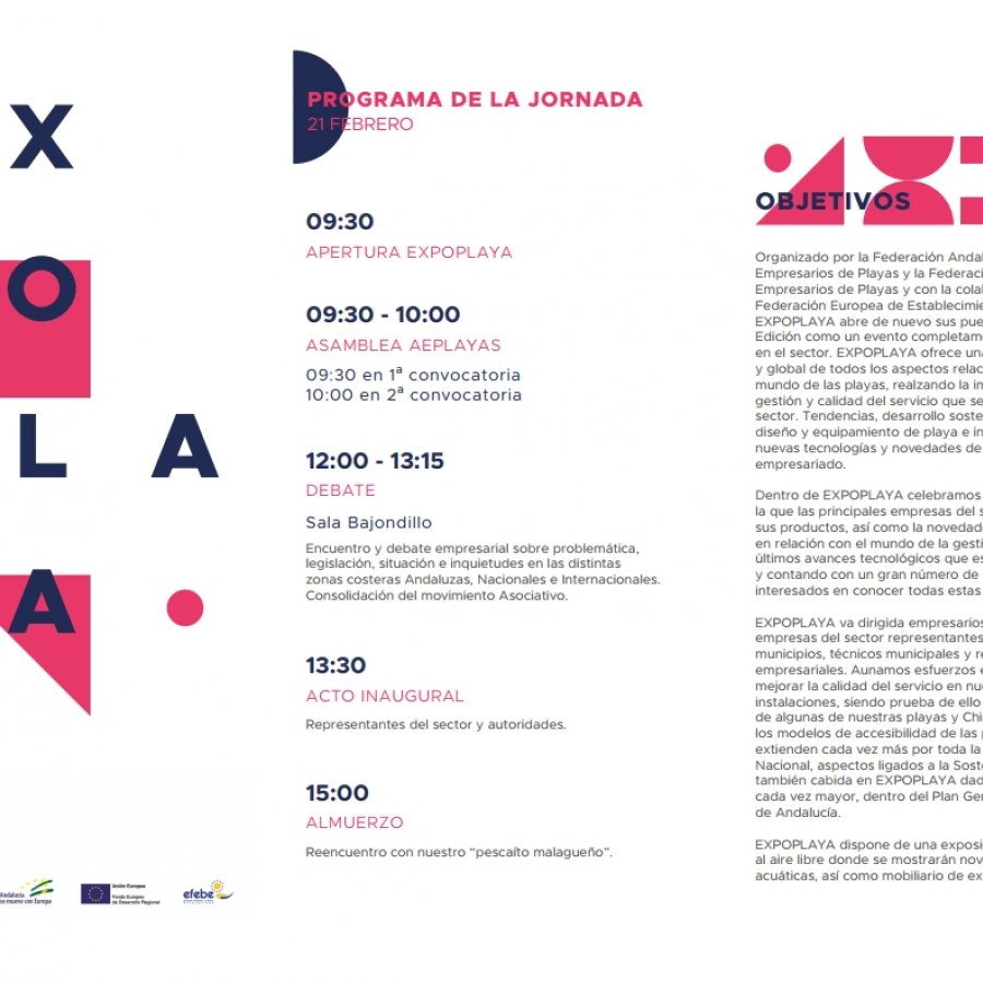 Esta es la programación de la XLVIII Edición de EXPOPLAYA, que celebraremos el próximo 21 de Febrero en el Palacio de Congresos y Exposiciones de Torremolinos, organizada por las ...